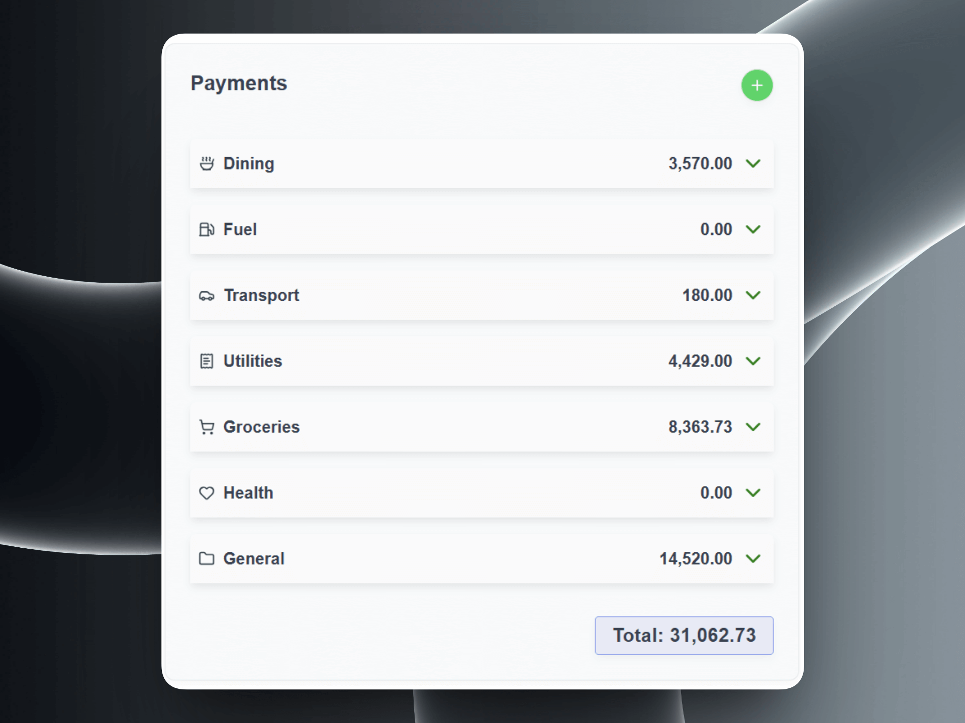 Add income and expenses with one tap. Smart categories make it effortless.